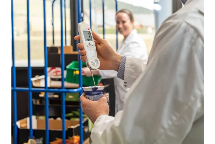 testo 104-IR BT, gıda sektöründe yüzey sıcaklıklarını temassız biçimde ölçer ve gerekirse çekirdek sıcaklığını hemen doğrular. Bu iki ölçüm modu, mal kabulünden üretim alanlarına kadar tüm HACCP noktalarında hızlı karar almanızı sağlar. Ayrıca cihaz tüm değerleri Bluetooth ile doğrudan testo Smart App uygulamasına gönderir. Bu yapı dijital, hatasız ve izlenebilir kayıt elde etmenizi kolaylaştırır.