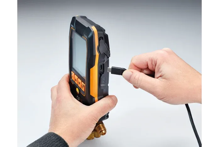 Testo 558s dijital manifold zorlu saha koşullarına uygun olarak tasarlanmıştır. IP54 koruma sınıfı, cihazın toz ve su sıçramalarına karşı dayanıklı olmasını sağlar. Bu sayede klima servisleri, endüstriyel soğutma uygulamaları ve bakım çalışmaları sırasında güvenle kullanılabilmektedir. Hibrit güç sistemi sayesinde cihaz hem şarj edilebilir pil hem de AA pil ile çalışabilmektedir. USB-C bağlantısı hızlı şarj imkânı sunar. Bu sayede cihaz sahada her zaman kullanıma hazır durumda kalır.