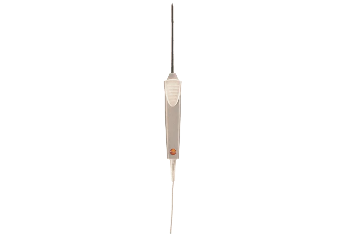 Testo PT100 sensörlü PTB onaylı daldırma/batırma probu, özellikle gıda güvenliği ve kalite kontrol uygulamalarında ürünlerin iç sıcaklığını doğru ve tekrarlı şekilde ölçmek içindir. Et, peynir, yarı katı ürünler ve sıvılarda doğrudan temaslı ölçüm imkânı sunar. PTB onayı, probun yasal metroloji gerekliliklerini karşıladığını ve resmi denetimlerde güvenle kullanılabileceğini gösterir. Böylece gıda üretimi, depolama, dağıtım ve satış noktalarındaki kontroller mevzuata uygun şekilde gerçekleştirilmektedir. IP65 koruma sınıfına sahip suya dayanıklı gövde, probun yıkanır ve hijyenik kullanımını mümkün kılar. Bu özellik, özellikle HACCP süreçlerinde ve yoğun temizlik yapılan üretim alanlarında önemli bir avantaj sağlar. Uzun ve ince paslanmaz prob şaftı, ürünün merkezine kolayca nüfuz etmektedir. Hızlı tepki süresi sayesinde ölçüm sonuçları kısa sürede stabil hâle gelmekte ve zaman kaybı yaşanmamaktadır. Sabit kablolu tasarım, saha kullanımında bağlantı sorunlarını ortadan kaldırır. testo uyumlu ölçüm cihazlarıyla birlikte kullanıldığında, güvenilir ve uzun süreli bir ölçüm çözümü sunar.